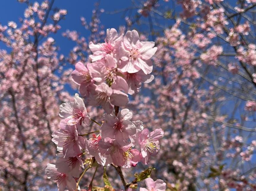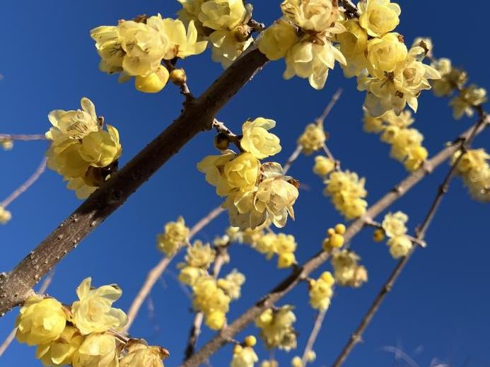 私は、ロウバイの季節を毎年1番楽しみにしています。少し高台に咲いているロウバイですが、たどり着くまでのおさんぽ道もたくさんの梅が咲いていて、とてもすてきでおすすめです。
