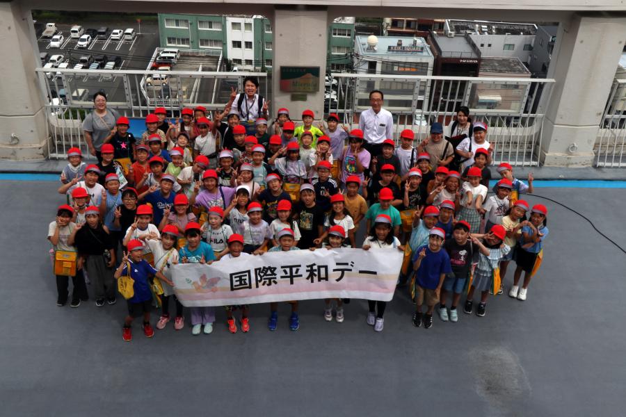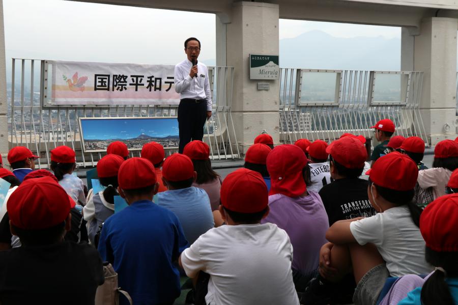 核兵器廃絶平和宣言都市である富士市では、次代を担う子どもたちと市長が、平和についてともに考え、核兵器のない平和な世界を願うイベントを、市役所屋上「ふじさんてらすMierula(ミエルラ)」及び富士山展望デッキにおいて、令和元年度から開催しています。