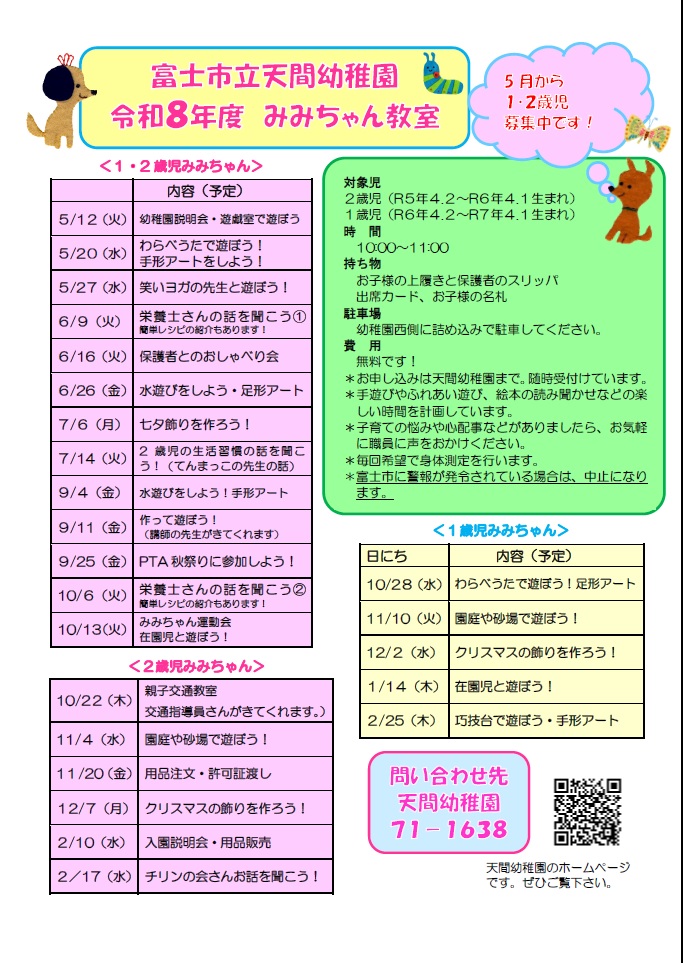 みみちゃん教室年間計画表 詳しくは園へお問い合わせください
