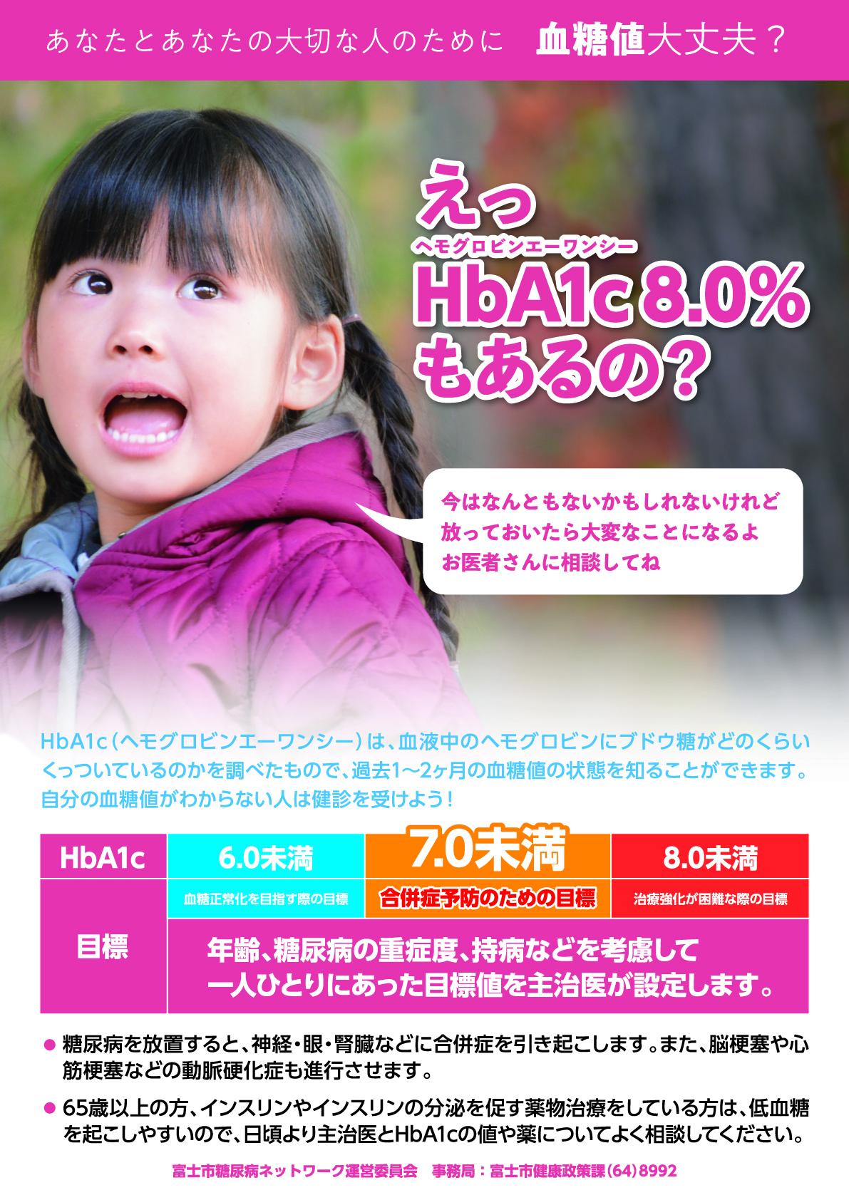 富士市糖尿病ネットワークでは、糖尿病の重症化予防のために啓発ポスターを作製しています。