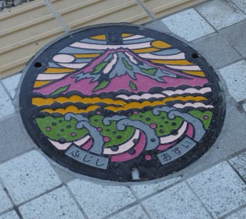 プリントシールマンホール蓋(富士山と田子の浦港の夜景)
