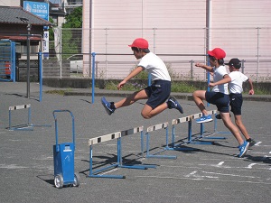 ようやく涼しくなってきました。休み時間に元気に、ドッジボールをする子どもが増えてきました。秋晴れのもと、楽しそうです。3年生の体育では、走り幅跳びに挑戦しています。「跳んで、ふわっとするところが気持ちいいです」「跳ぶときに上を見て(視線に気をつけて)跳ぶのがむずかしいです」など話していました。5年生のハードル走では、「走る速度を落とさずに、リズムよくハードルを越えよう」が目標です。足のあげ方を工夫して、段々と速く走れるようになっています。