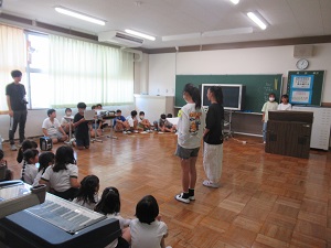 なかよしタイムがありました。6年生のなかよしリーダーさんが中心となって考えてくれた遊びをグループみんなで楽しみます。伝言ゲームをしたり、リーダーを探せゲームをしたり、新聞紙じゃんけんをしたりと様々な遊びを各グループごと行っていました。終了後は「楽しかったぁ!」の声がたくさん聞こえてきました。