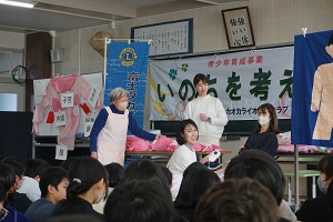 6年生のいのちを考える講演会がありました。富士タカオカライオンズクラブの皆さんがお話をしてくださいました。体の仕組みを教わるだけでなく、赤ちゃんの抱き方などを教わり、赤ちゃんと同じ重さの人形を抱く体験もさせていただきました。数名の妊婦さんが来てくださり、胎児の心音も聞かせていただきました。貴重なお話と体験をありがとうございました。