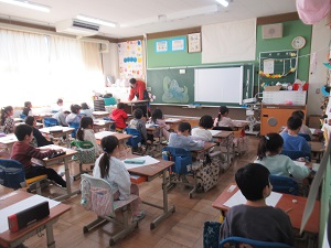 1年生は凧作りを行っています。実際に飛ばすのを楽しみに制作に励んでいました。6年生の理科では、実験用てこを使って釣り合う時のきまりについて調べていました。2年生の図画工作ではカッターナイフを上手に使って画用紙を切り取り、作品を作っていました。4年生は体育科で縄跳びを行っていました。6年生は5校時に卒業に向けて学年集会を行いました。悔いのない卒業にするために友達や家族との関わり方や日々の過ごし方などのお話も聞き、どの子も真剣に聴き考えていました。