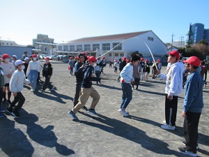 体育委員会主催の長縄大会が始まりました。今日は高学年の部です。各クラスの有志が集まり、回数を競い合いました。声を掛け合い、楽しみながら取り組んでいました。