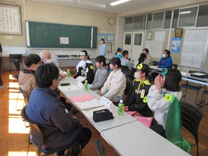 学校運営協議会が開催されました。会が始まる前に、まちづくり協議会様より、のぼり旗を贈呈していただきました。こののぼり旗は、子どもたちが選んだものです。これからのぼり旗を見ながら、交通安全や挨拶を頑張っていきたいと思います。学校運営協議会では、運営委員会の子どもたちから学校運営協議委員の皆様へ児童会の取組についての説明と、子どもたちと委員の皆様との懇談を行いました。児童会の取組についてたくさんのお褒めの言葉をいただきました。子どもたちは委員の皆様よりいただいたアドバイスを来年度の児童会に生かしていこうと気持ちを高めていました。