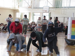 委員会引継ぎ式と6年生ありがとうの会がありました。委員会引継ぎ式では、56年生の凛々しい姿を、下級生はじっと見つめ、厳かな式となりました。6年生ありがとうの会では、各学年からたくさん練習を積み重ねてきたありがとうの出し物が披露されました。6年生に感謝の気持ちを込めながらどの学年も精いっぱいがんばりました。6年生からはとても美しい歌声の合唱のお返しがありました。お昼は美味しいお弁当を頬張りました。昼は5年生主催のなかよしタイムがありました。楽しく6年生と遊ぶとともに心のこもったメッセージカードのプレゼントを贈りました。6年生からは下級生全員にぶんぶんゴマのプレゼントがありました。