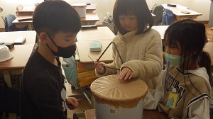 1年生の生活科では、秋の物を使って遊べるものを作っています。子どもたちは、「どんぐりごま」「やじろべい」「どんぐりめいろ」などを工夫して作っています。