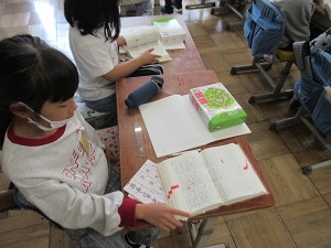 4年生は書写の授業を行いました。お手本と自分の字を見比べながらどうしたら上手に書けるのか考えながら取り組んでいました。3年生の算数科では大きな数について学習していました。友達と数字カードを隠して順番に引きながらどちらが大きな数になるのかゲームを行いながら楽しく取り組んでいました。3年生は国語科で国語辞典の使い方の練習を行っていました。昨日より早く引けるようになりました。