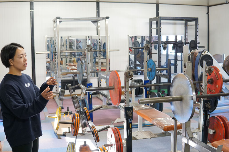 富士に移住してからは、夫の実家が運営しているFTGYMで、1対1での指導を、トレーニングをしたことがない、してみたいという女性向けに主に行っています。また、パワーリフティングを習いたいという方の指導もしています。