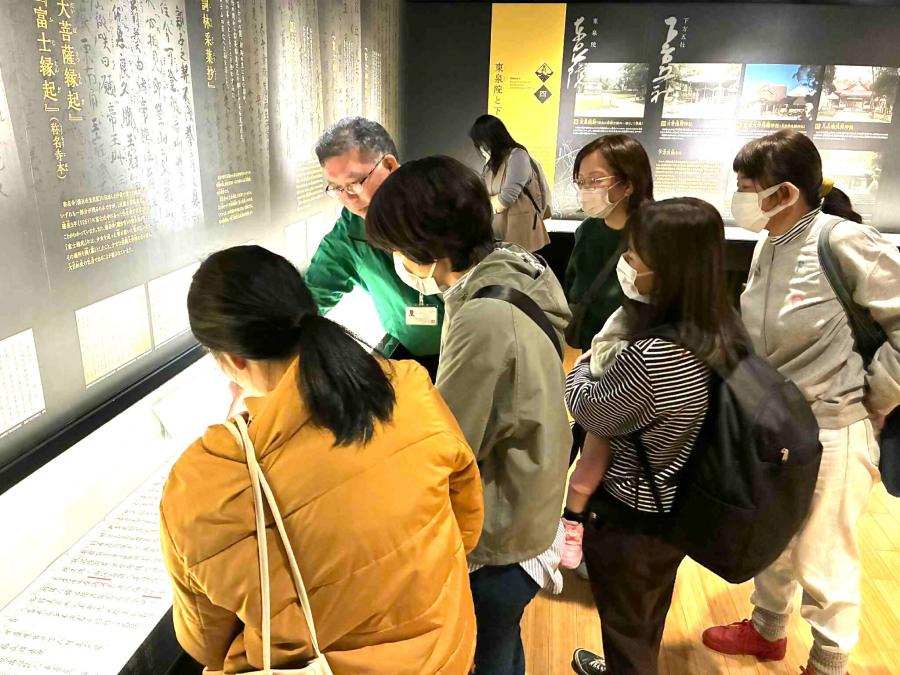 前半の展示コーナーでは、縄文時代から江戸時代までの富士の歴史にふれることができます。石川さんの解説に耳を傾けながら、国指定史跡で富士市最大の古墳である浅間古墳をはじめ、吉原宿や富士川渡船に関する資料を見て、当時の様子を感じ取ることができました。