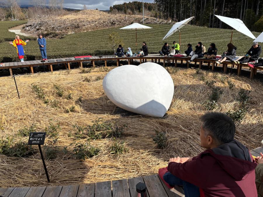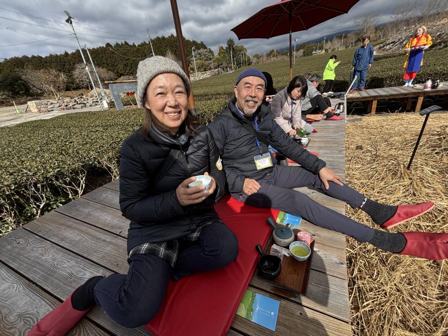 今回は茶畑に浮かぶように作られたスペースで、荻野製茶の自家製茶「龍神茶健」を、急須で淹れるお茶淹れ体験をしました。