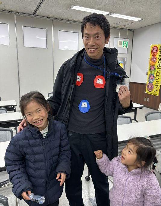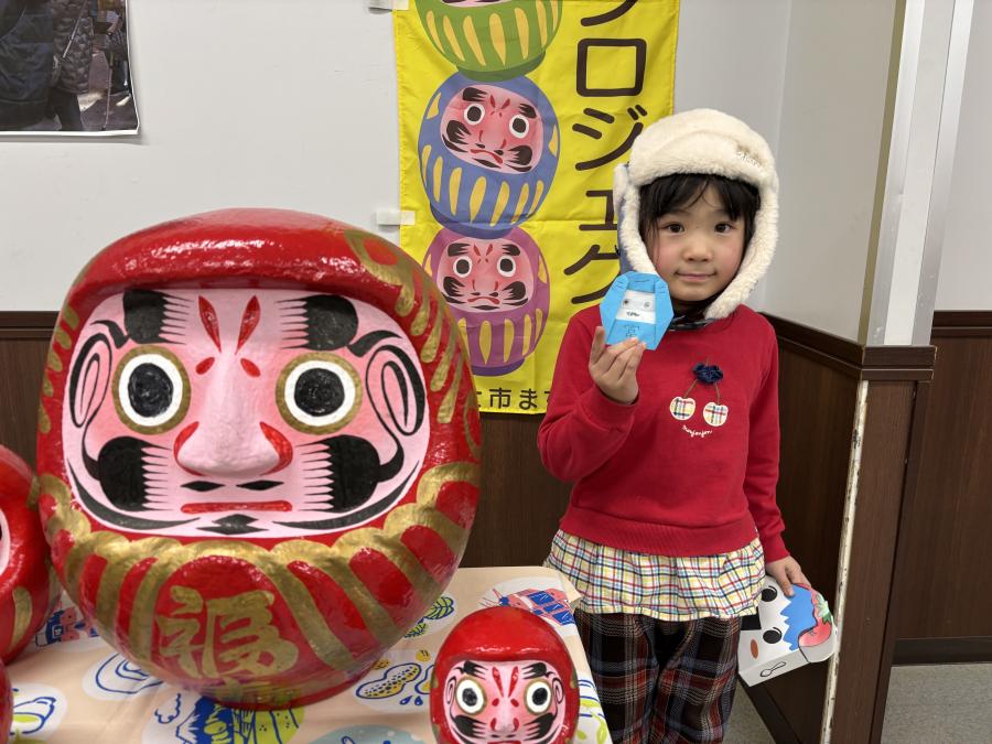お話を聞く間、参加した子供たちは、だるまの折り紙などで、富士市のだるまを身近に感じていました。