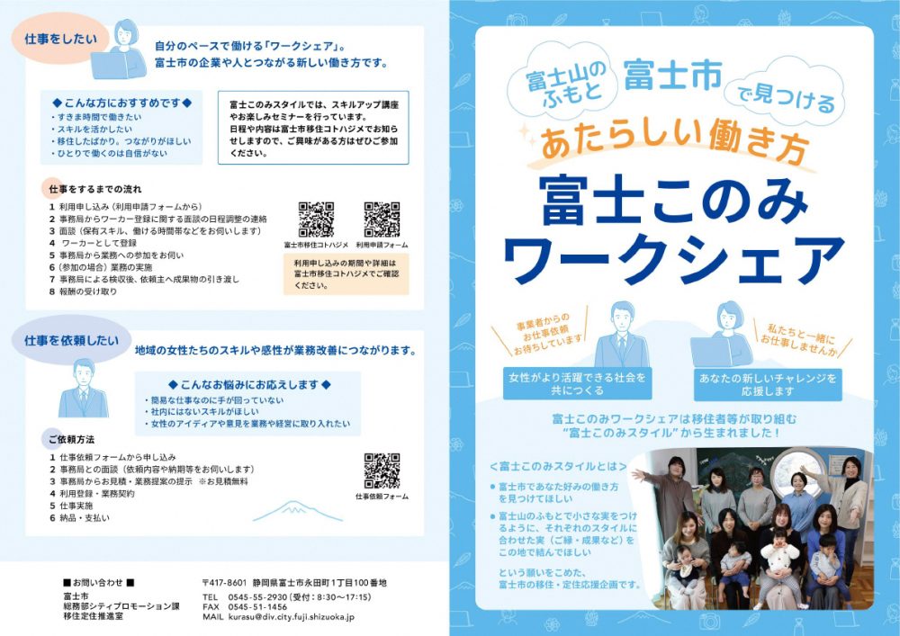 富士このみスタイル「ワークシェア」ワーカー追加募集!(10月16日-10月31日申し込み受付)