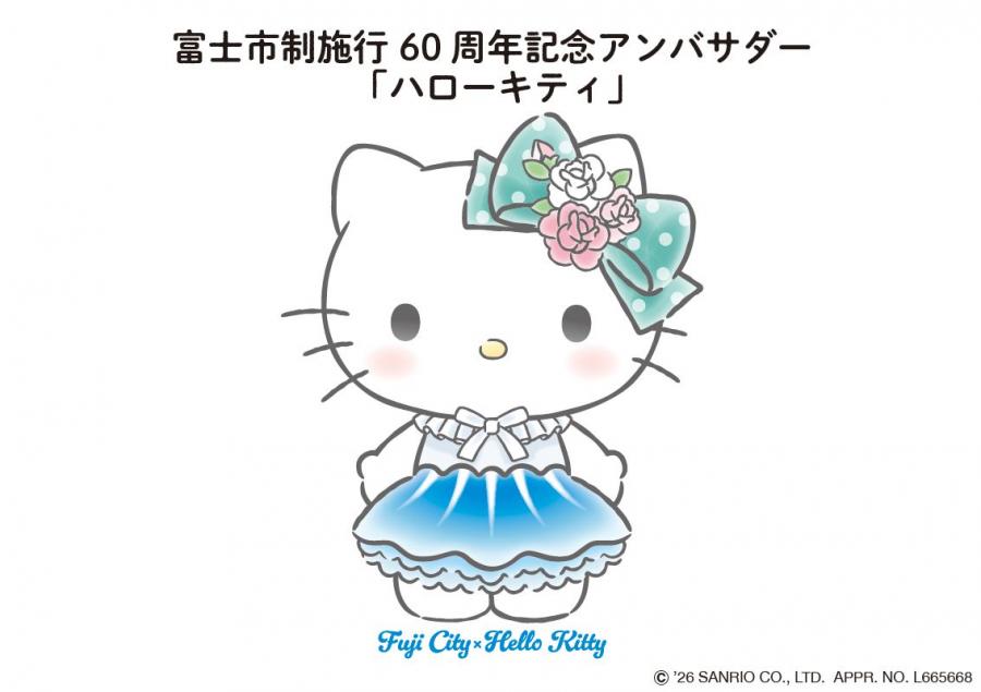 富士市は、市制施行60周年を市民の皆様とともに祝い、さらに盛り上げていくため、世界的人気のキャラクター「ハローキティ」を「富士市制施行60周年記念アンバサダー」に任命しました。