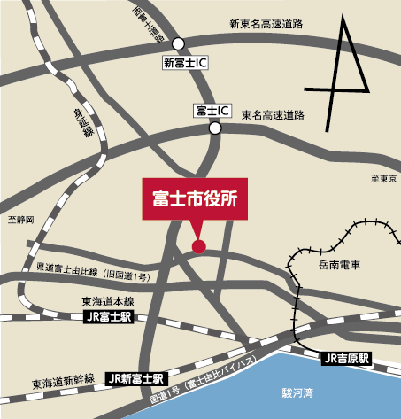 | JR富士駅から | 吉原中央駅行→「富士市役所前」で下車(所要時間:15分) |